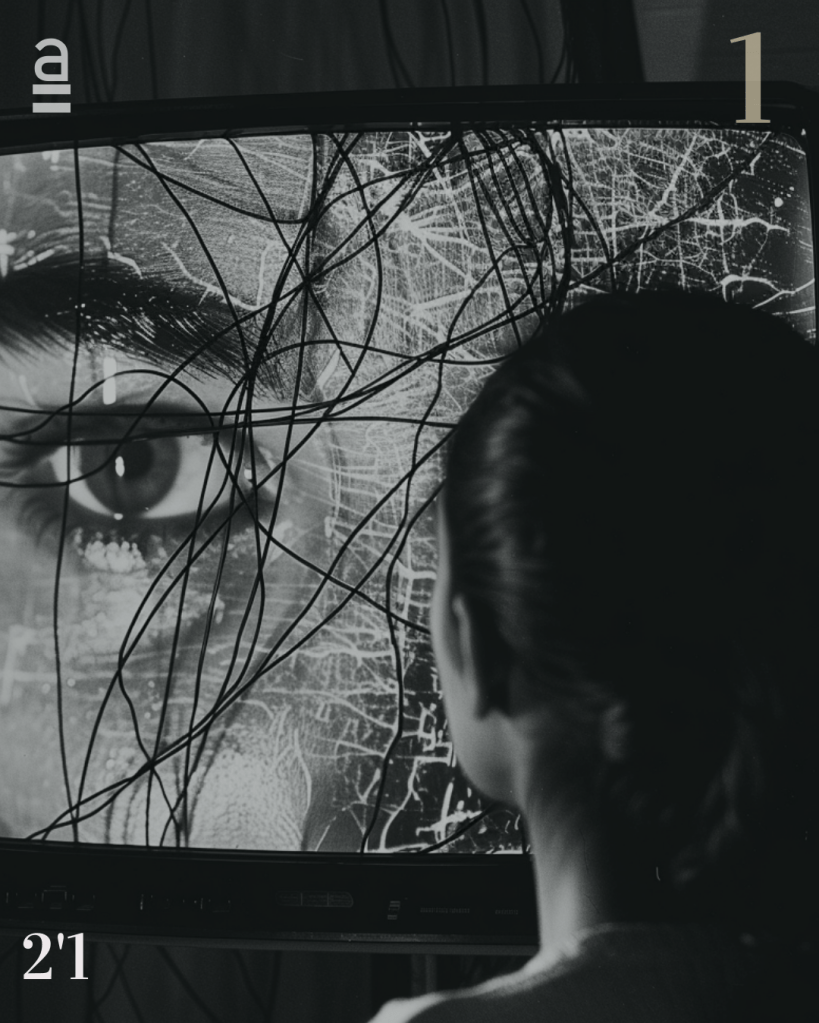 Conversations are copied. Identities are rewritten. Emotions are represented before they are felt. The face is not merely a face it is an interface. The eyes function like portals, receiving data. Memory is no longer an archive, but a flow. And in that flow, hardly anyone pauses long enough to return to themselves.